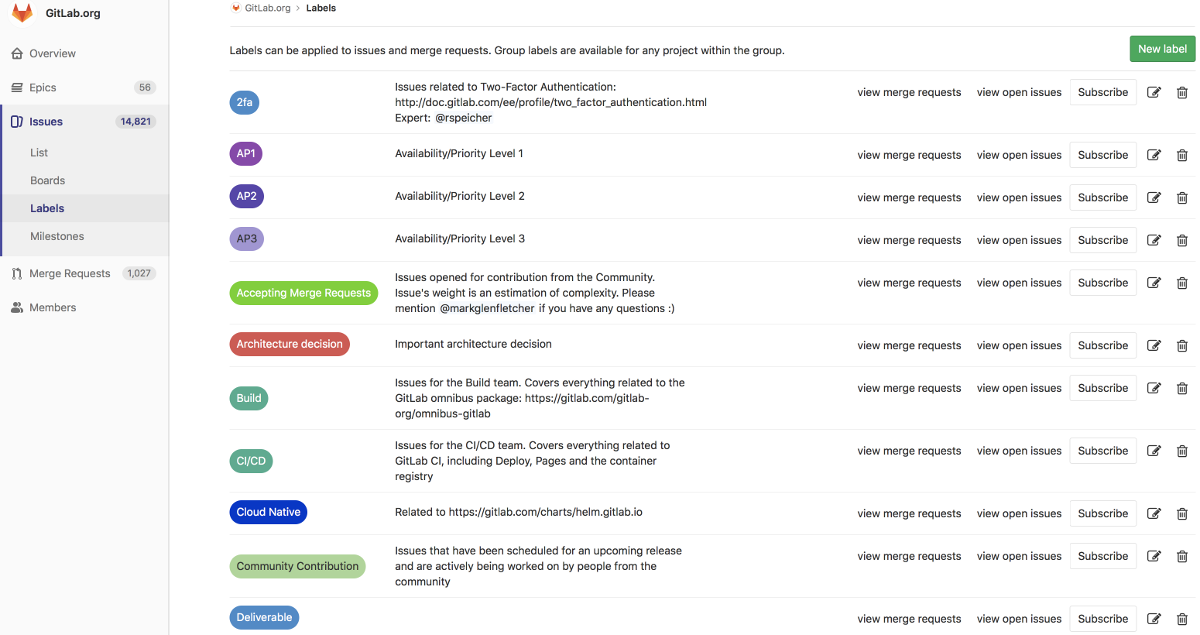 • Group labels can be assigned to any issue or merge request of any project in that group.